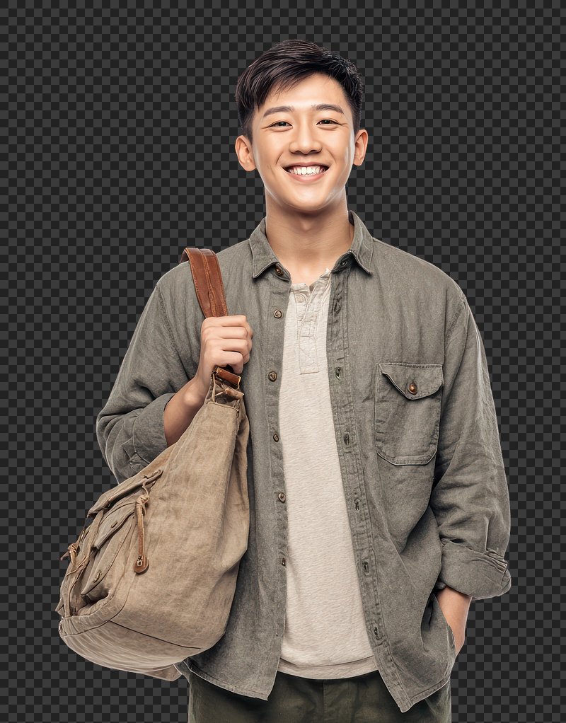 PNG Smiling young man with bag https://www.rawpixel.com/image/25334284/png-smiling-young-man-with-bagView license