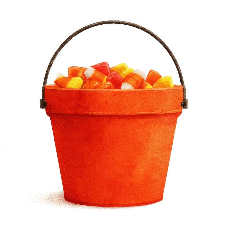 Colorful candy corn bucket illustration. https://www.rawpixel.com/image/20868629/colorful-candy-corn-bucket-illustrationView license
