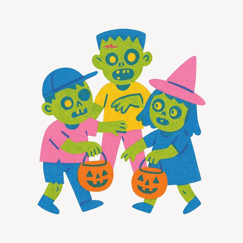 Colorful cartoon zombie children https://www.rawpixel.com/image/22335632/colorful-cartoon-zombie-childrenView license