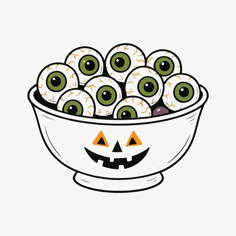 Spooky eyeball bowl illustration https://www.rawpixel.com/image/22115430/spooky-eyeball-bowl-illustrationView license