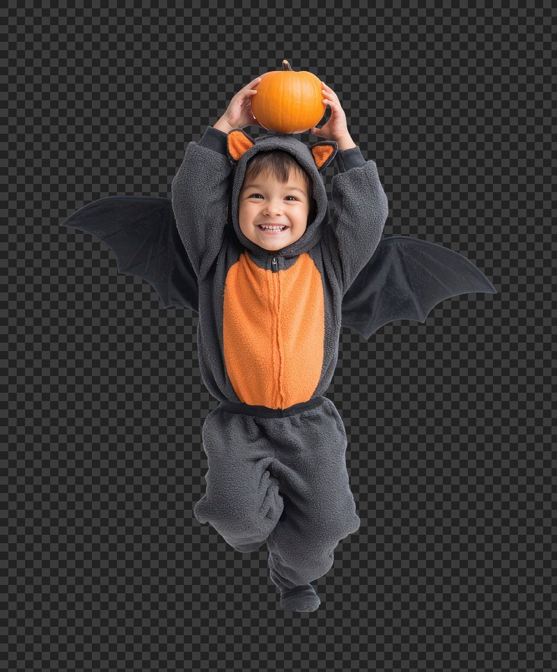 PNG Happy child dressed in a bat costume festive pumpkin wings. https://www.rawpixel.com/image/21908834/png-happy-child-dressed-bat-costume-festive-pumpkin-wingsView license