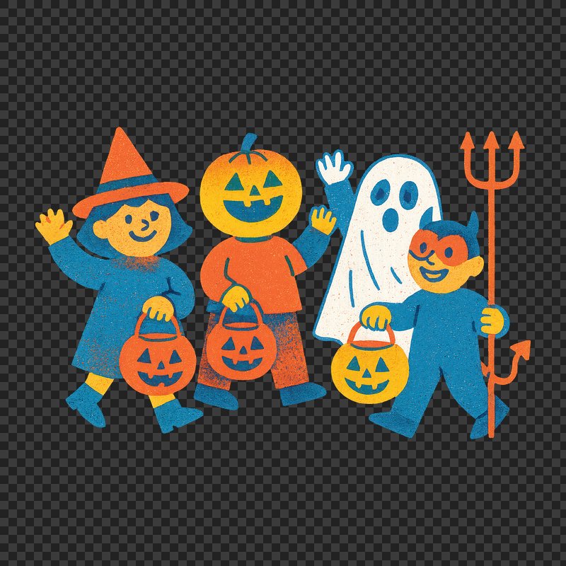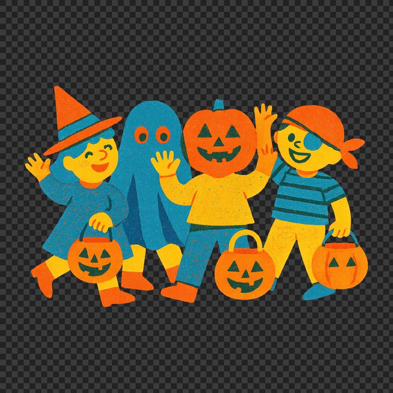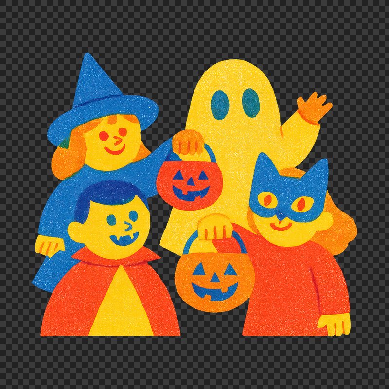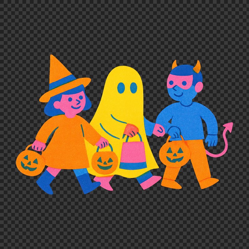PNG Colorful children trick-or-treating illustration. https://www.rawpixel.com/image/21804653/png-colorful-children-trick-or-treating-illustrationView license