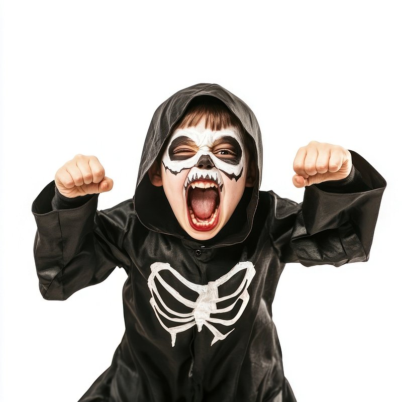 Child in skeleton costume roaring. https://www.rawpixel.com/image/20514718/child-skeleton-costume-roaringView license