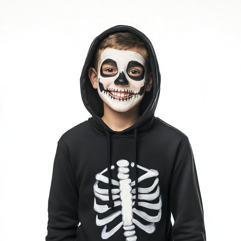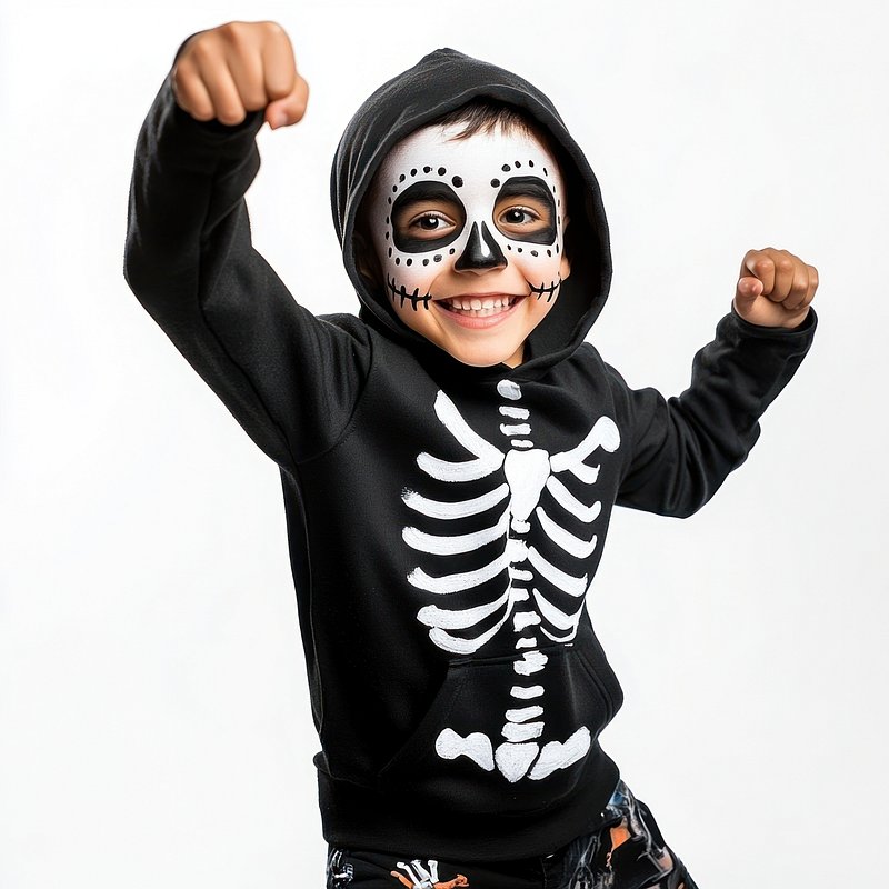 Child in skeleton costume smiling https://www.rawpixel.com/image/20512119/child-skeleton-costume-smilingView license