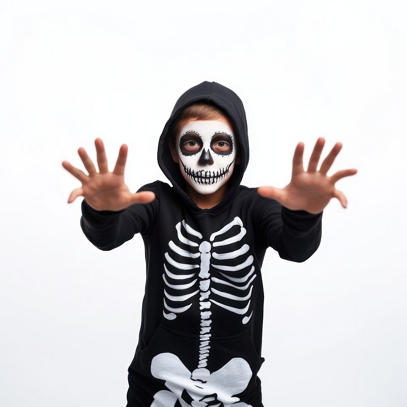 Child in skeleton costume posing https://www.rawpixel.com/image/20514458/child-skeleton-costume-posingView license