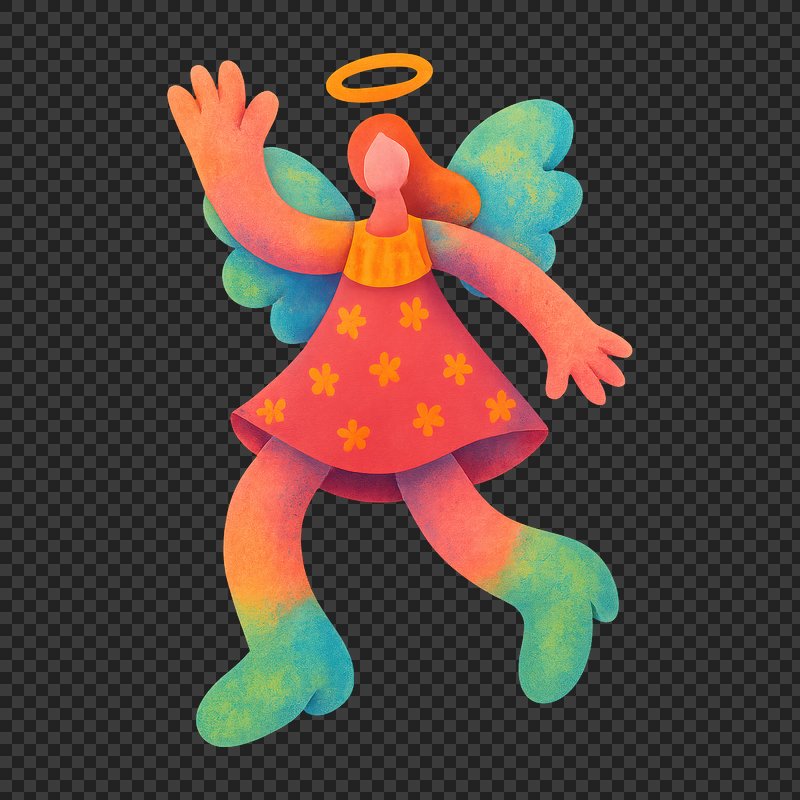 PNG Colorful whimsical angel illustration. https://www.rawpixel.com/image/21642668/png-colorful-whimsical-angel-illustrationView license
