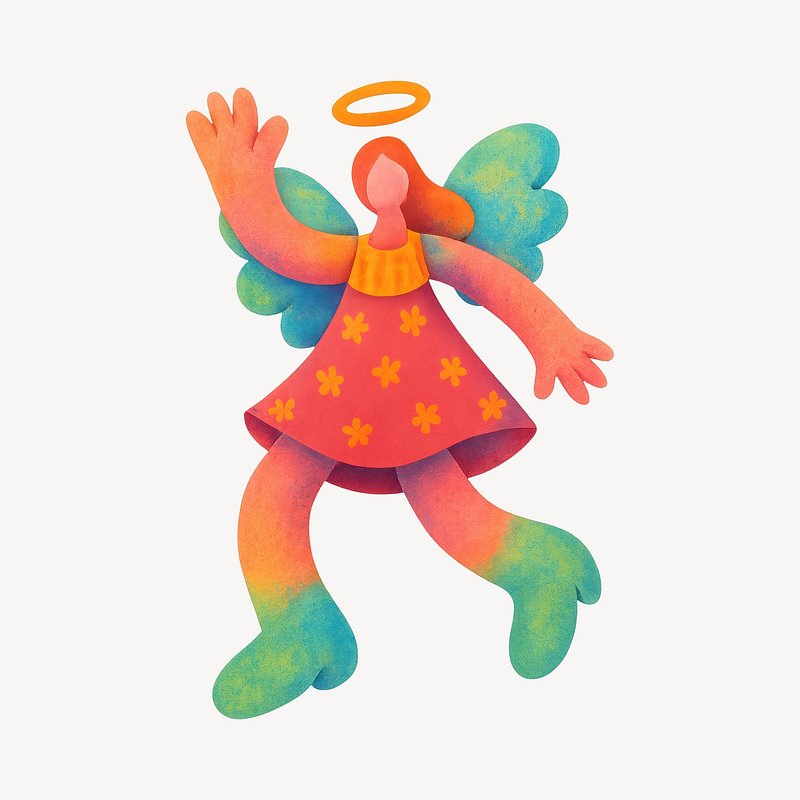Colorful whimsical angel illustration. https://www.rawpixel.com/image/22122691/colorful-whimsical-angel-illustrationView license