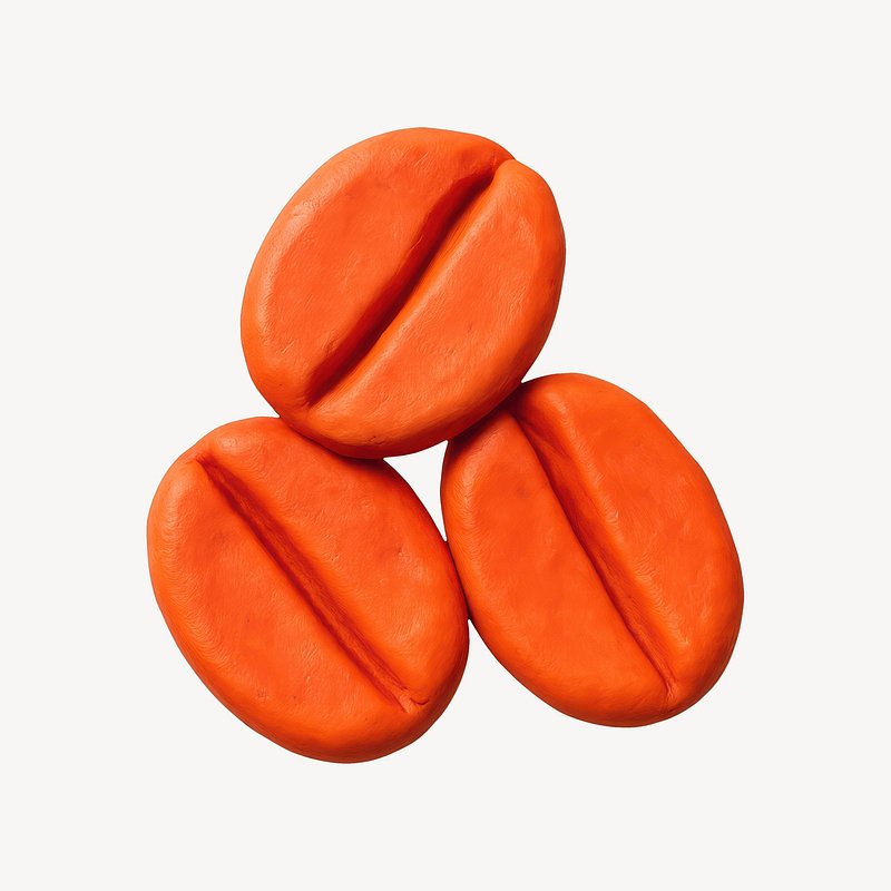 Three orange clay coffee beans. https://www.rawpixel.com/image/24856002/three-orange-clay-coffee-beansView license