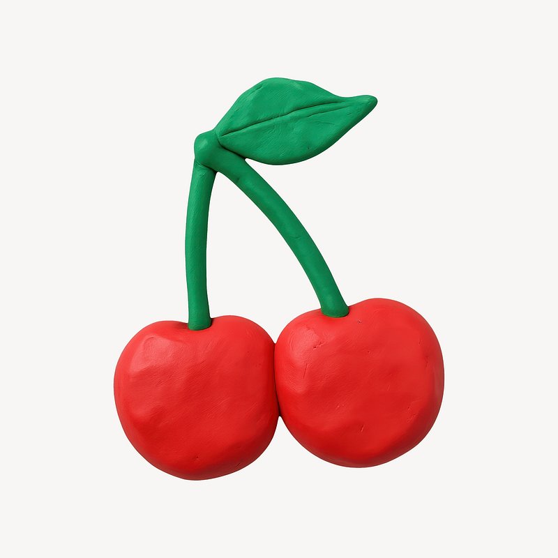 Colorful clay cherries with leaves. https://www.rawpixel.com/image/24856432/colorful-clay-cherries-with-leavesView license