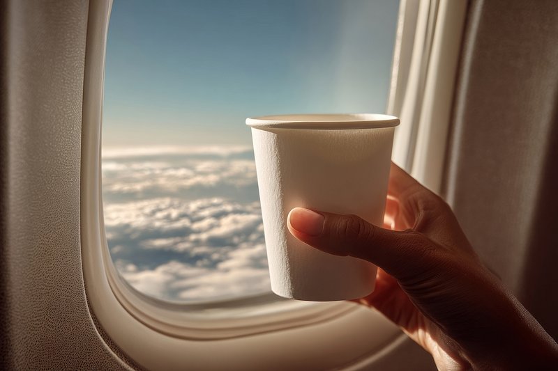 Coffee cup airplane window view https://www.rawpixel.com/image/24320054/coffee-cup-airplane-window-viewView license