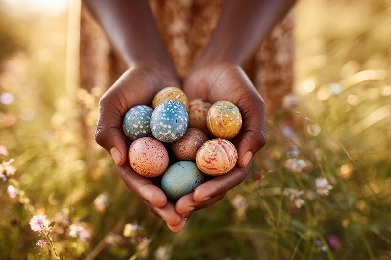 Colorful eggs in hands outdoors. https://www.rawpixel.com/image/25049488/colorful-eggs-hands-outdoorsView license