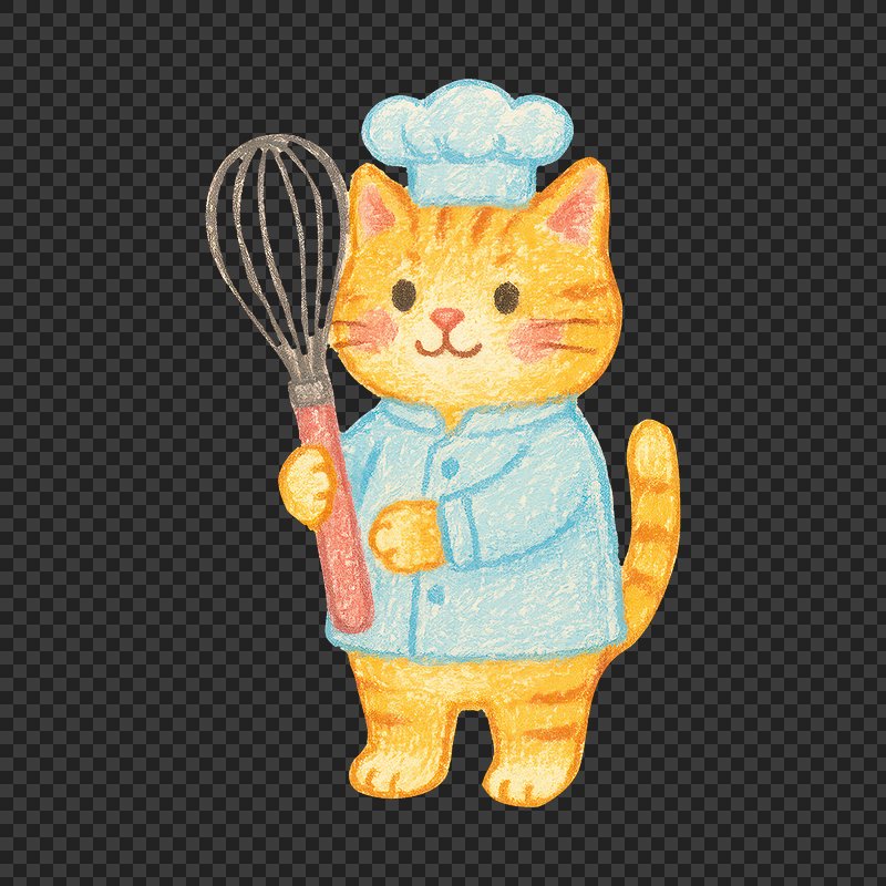 Adorable cat chef illustration. https://www.rawpixel.com/image/24788887/adorable-cat-chef-illustrationView license