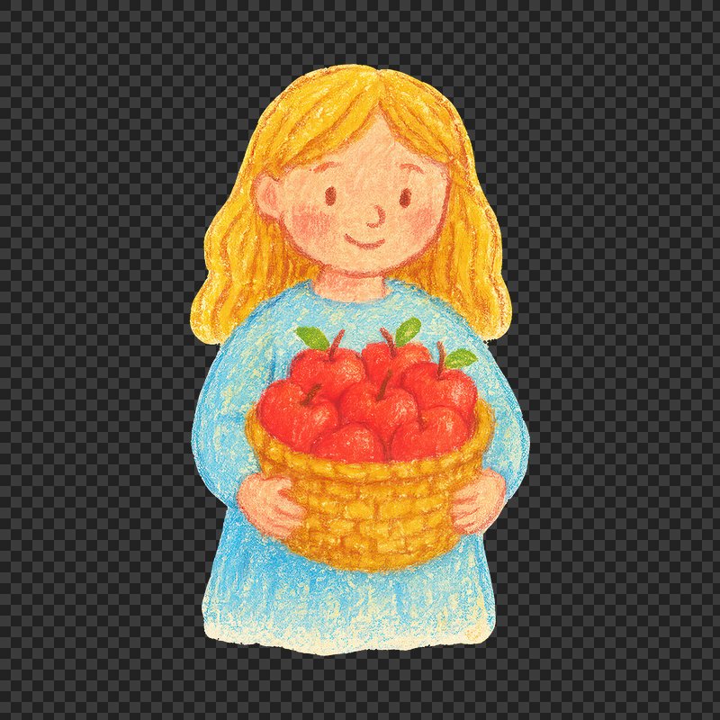 PNG Child holding basket of apples. https://www.rawpixel.com/image/24752082/png-child-holding-basket-applesView license