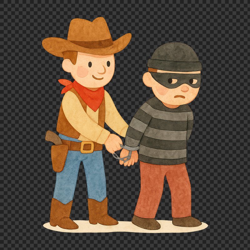 PNG Cartoon sheriff arrests masked thief. https://www.rawpixel.com/image/20321950/png-cartoon-sheriff-arrests-masked-thiefView license