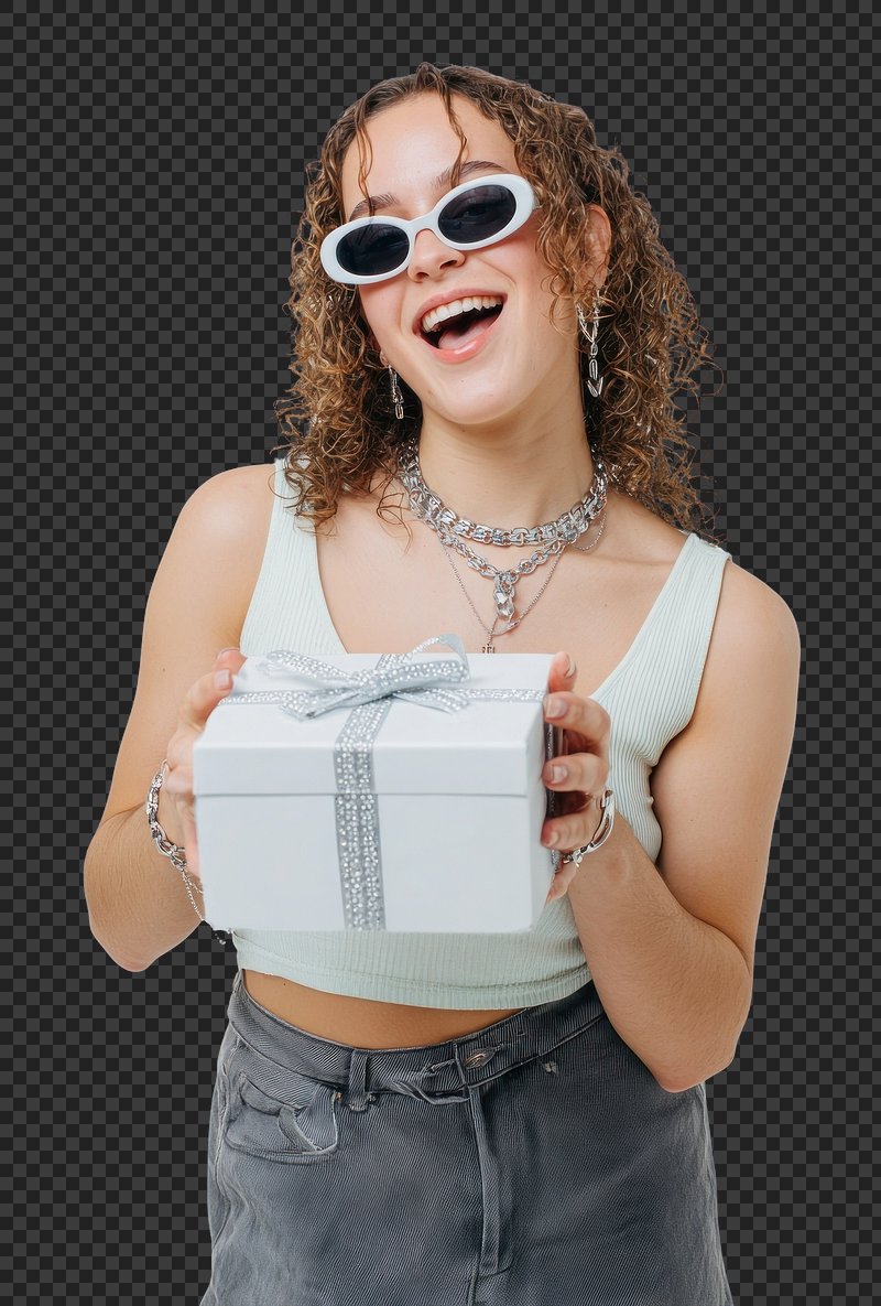 PNG Joyful woman holding gift box. https://www.rawpixel.com/image/20886099/png-joyful-woman-holding-gift-boxView license