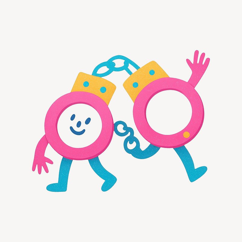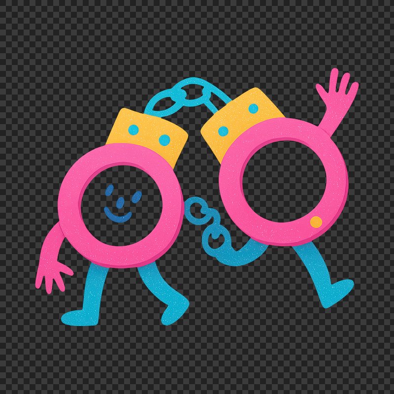Playful cartoon handcuff characters https://www.rawpixel.com/image/21800469/playful-cartoon-handcuff-charactersView license