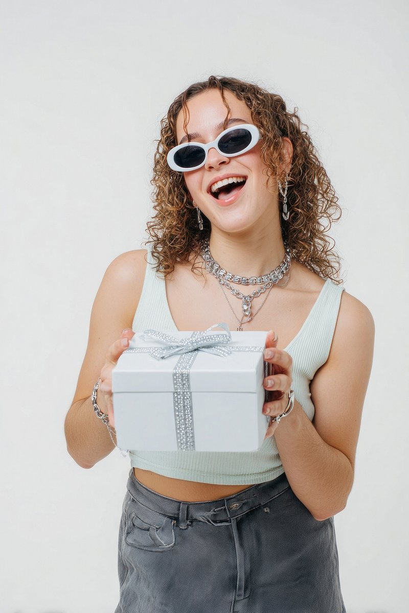 Joyful woman holding gift box. https://www.rawpixel.com/image/20561512/joyful-woman-holding-gift-boxView license