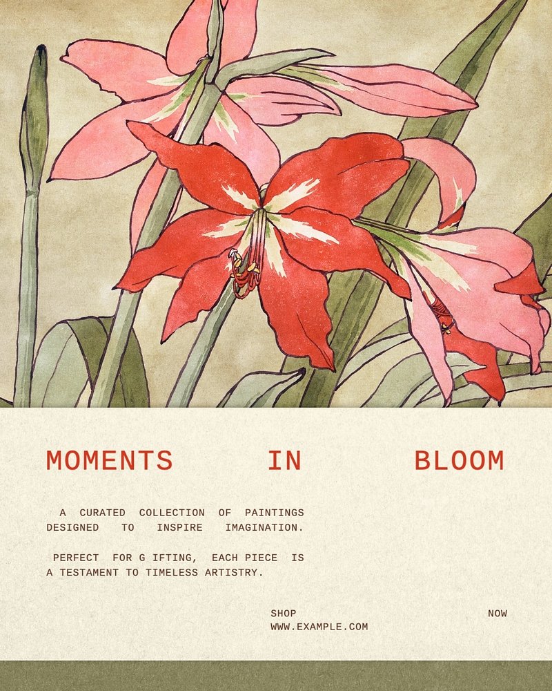 Vintage exhibition template, original art illustration from Hannah Borger Overbeck. https://www.rawpixel.com/image/23102766/image-flower-leaf-plantView license