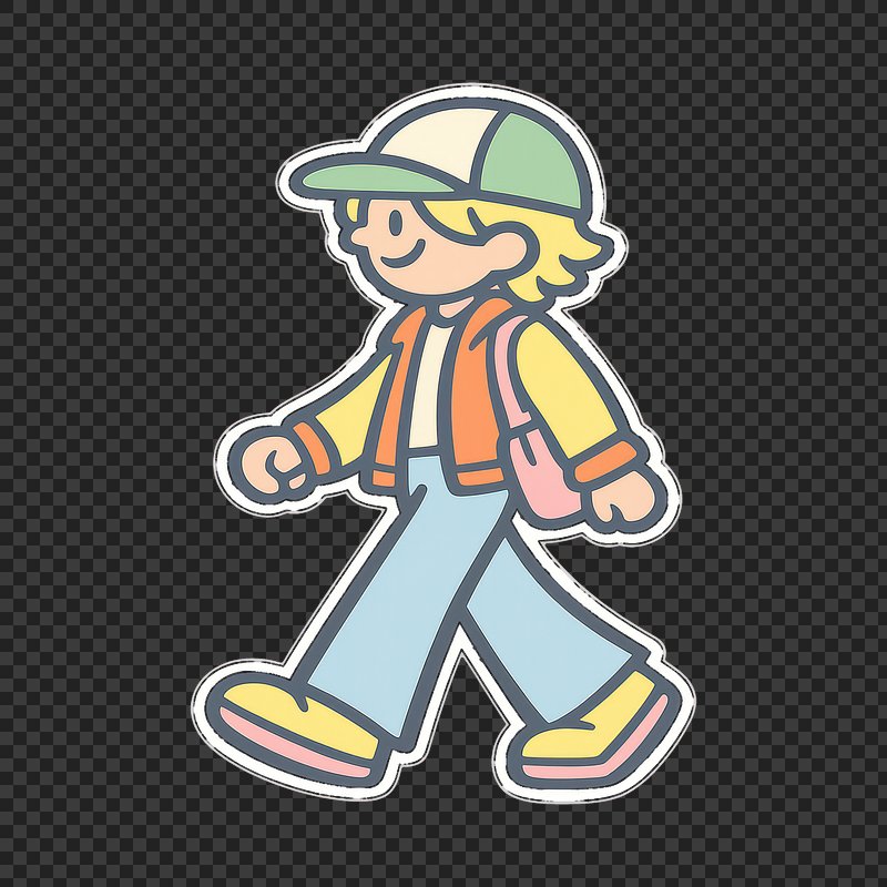 PNG Cartoon character walking happily. https://www.rawpixel.com/image/25306362/png-cartoon-character-walking-happilyView license