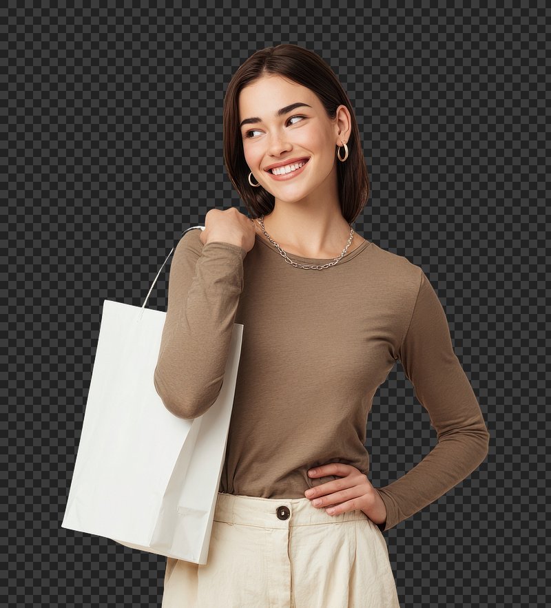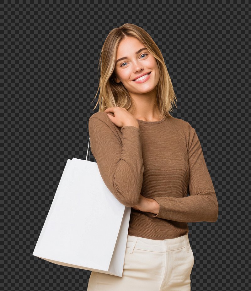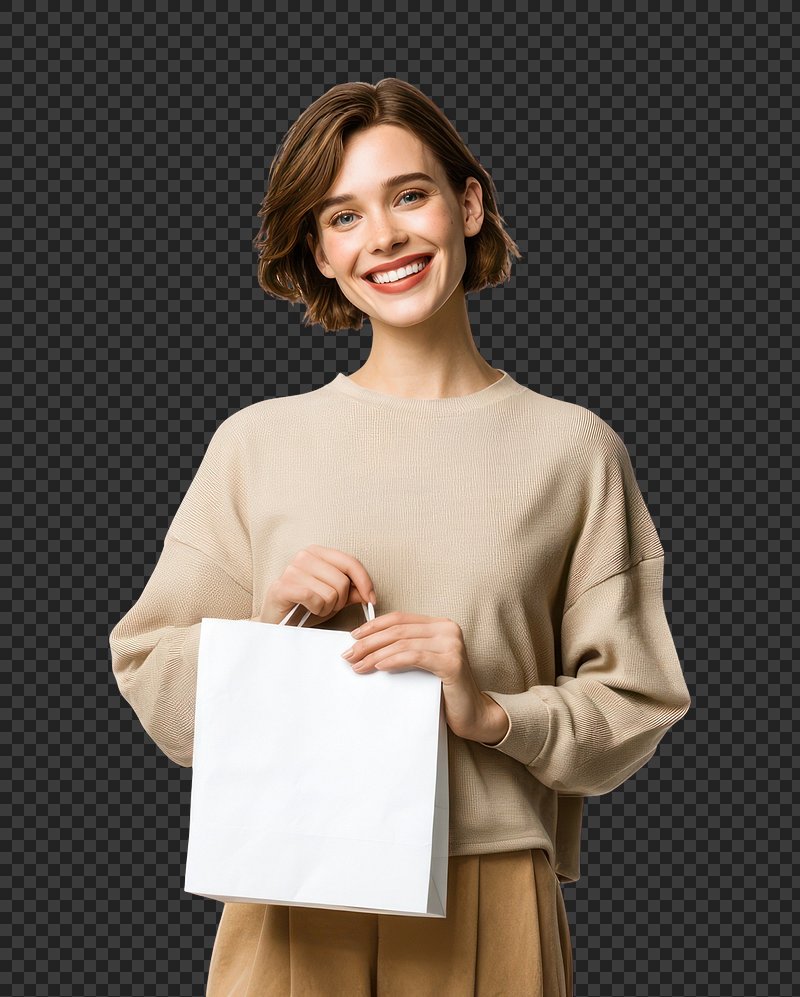 PNG Smiling woman holding shopping bag. https://www.rawpixel.com/image/24019106/png-smiling-woman-holding-shopping-bagView license