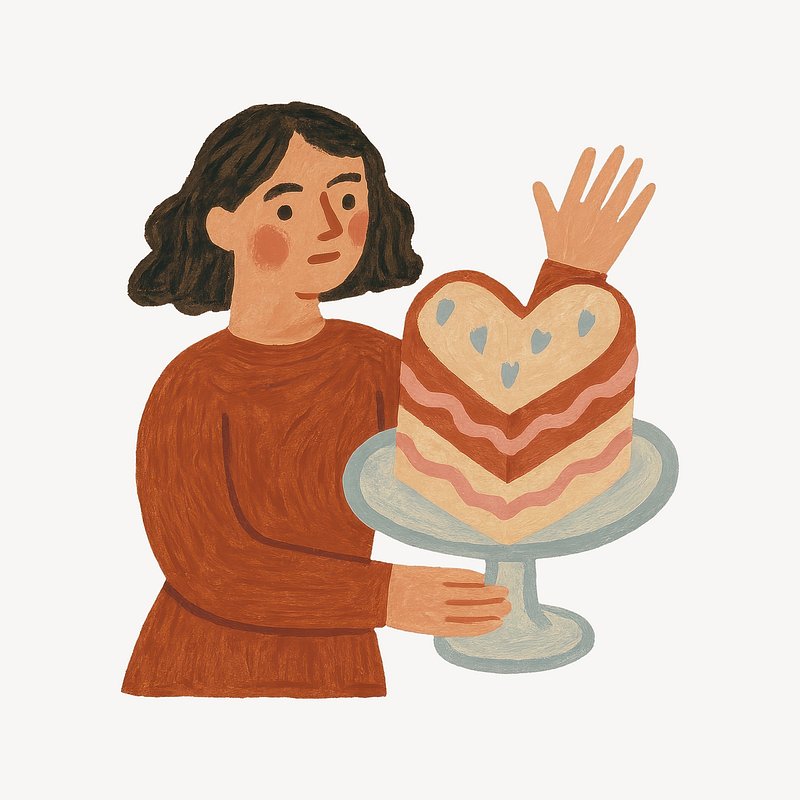 Illustration of woman with cake https://www.rawpixel.com/image/24856055/illustration-woman-with-cakeView license