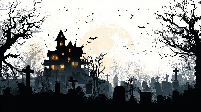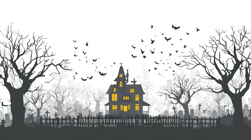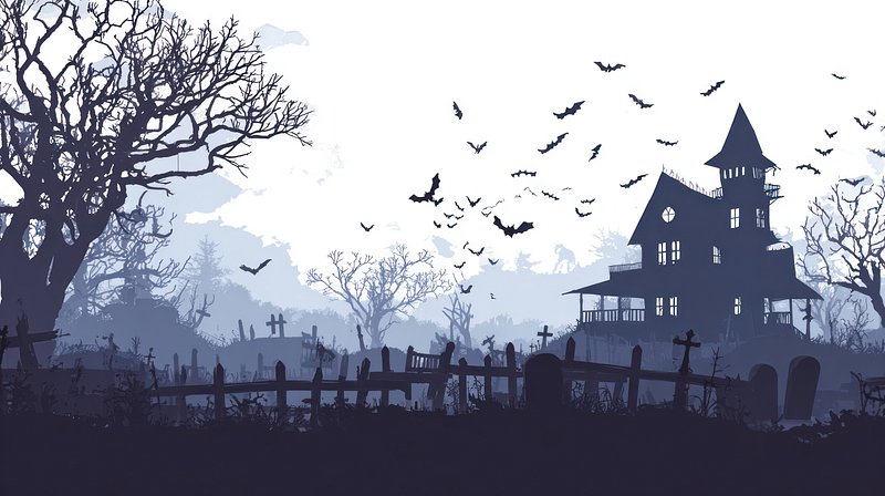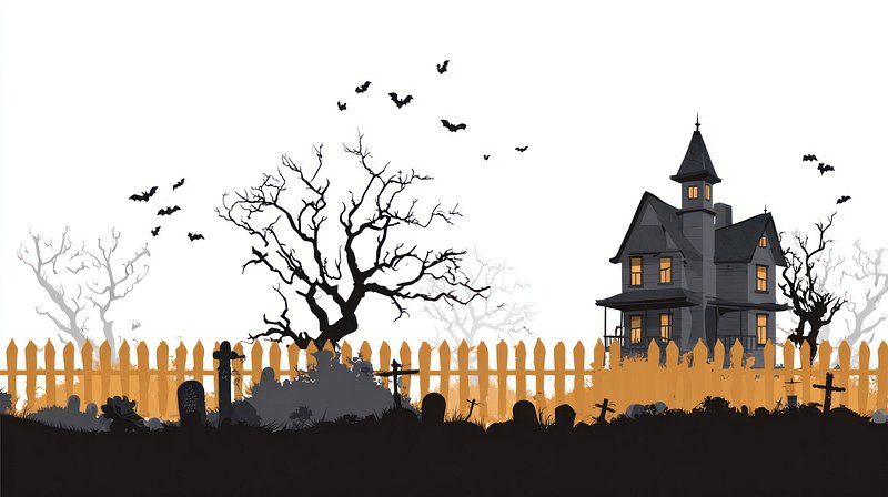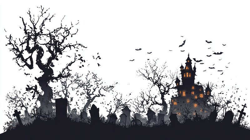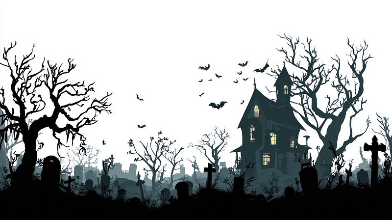 Eerie haunted house with graveyard. https://www.rawpixel.com/image/20780296/eerie-haunted-house-with-graveyardView license