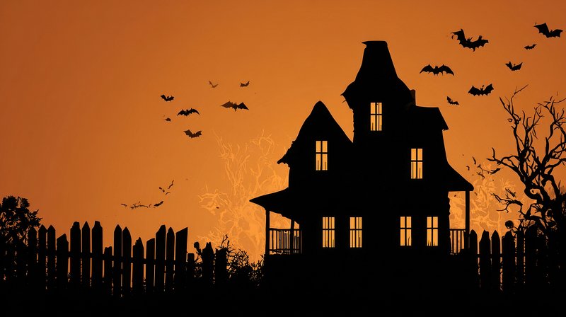 Haunted house with flying bats. https://www.rawpixel.com/image/20356879/haunted-house-with-flying-batsView license