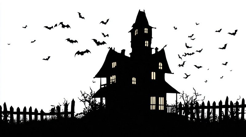 Spooky haunted house silhouette. https://www.rawpixel.com/image/20358374/spooky-haunted-house-silhouetteView license