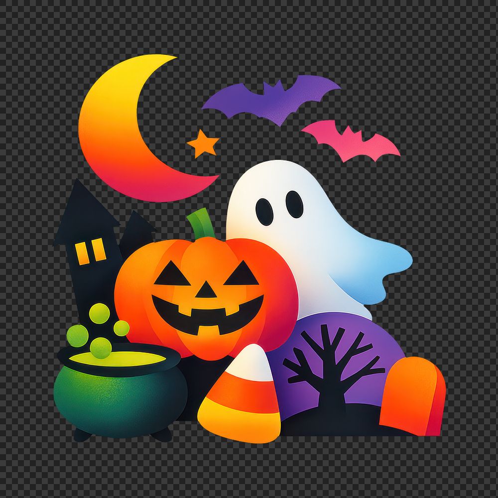 PNG Colorful Halloween cartoon illustration. https://www.rawpixel.com/image/25741798/png-colorful-halloween-cartoon-illustrationView license