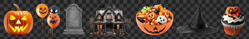 PNG Halloween icons and decorations collection, element set on transparent background https://www.rawpixel.com/image/19165532/png-balloons-houseView license