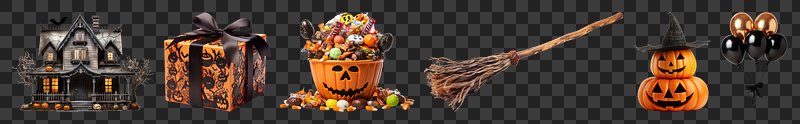 PNG Halloween festive decorations and treats, element set on transparent background https://www.rawpixel.com/image/19165552/png-balloons-gift-boxView license