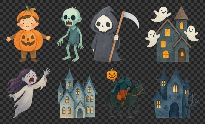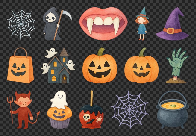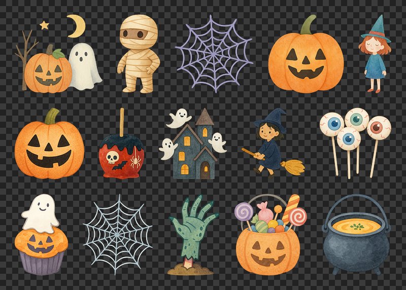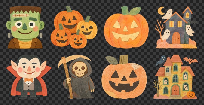 PNG Whimsical Halloween cartoon icons, element set on transparent background https://www.rawpixel.com/image/21300517/png-whimsical-halloween-cartoon-icons-element-set-transparent-backgroundView license