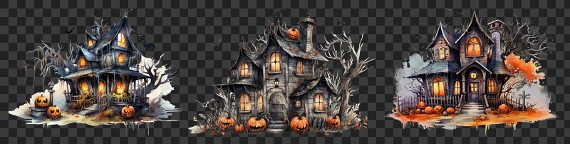 PNG Spooky haunted houses with pumpkins, element set on transparent background https://www.rawpixel.com/image/20956574/png-spooky-haunted-houses-with-pumpkins-element-set-transparent-backgroundView license