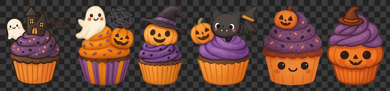 PNG Halloween cupcakes with spooky decorations, element set on transparent background https://www.rawpixel.com/image/21309918/png-cartoon-cuteView license
