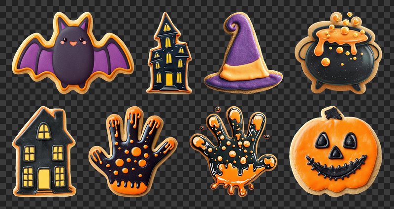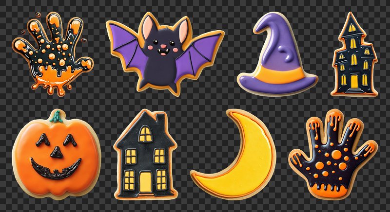 PNG Colorful Halloween-themed cookie designs, element set on transparent background https://www.rawpixel.com/image/22867691/png-cute-animalView license