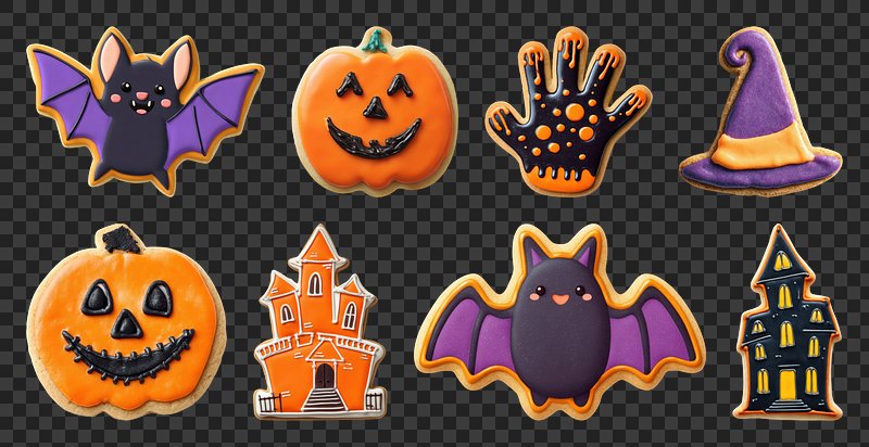 PNG Colorful Halloween-themed cookie designs, element set on transparent background https://www.rawpixel.com/image/22867694/png-cute-animalView license