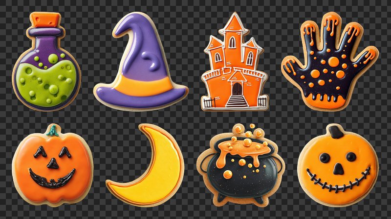 PNG Colorful Halloween-themed cookie designs, element set on transparent background https://www.rawpixel.com/image/22867351/png-cute-handView license