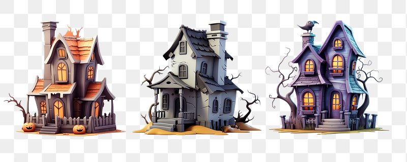 PNG Whimsical haunted houses with ghosts, element set on transparent background https://www.rawpixel.com/image/20226591/png-whimsical-haunted-houses-with-ghosts-element-set-transparent-backgroundView license