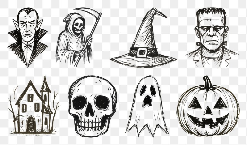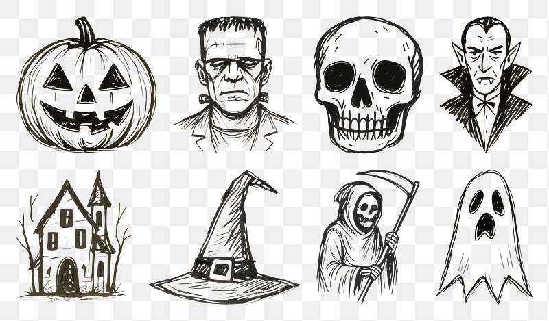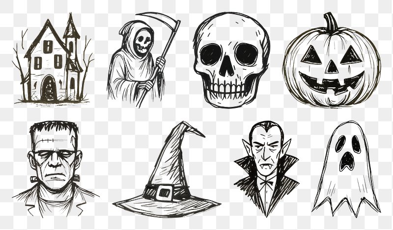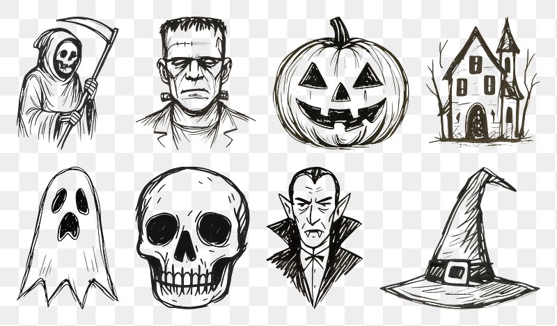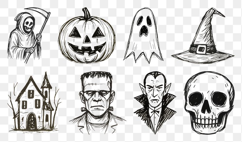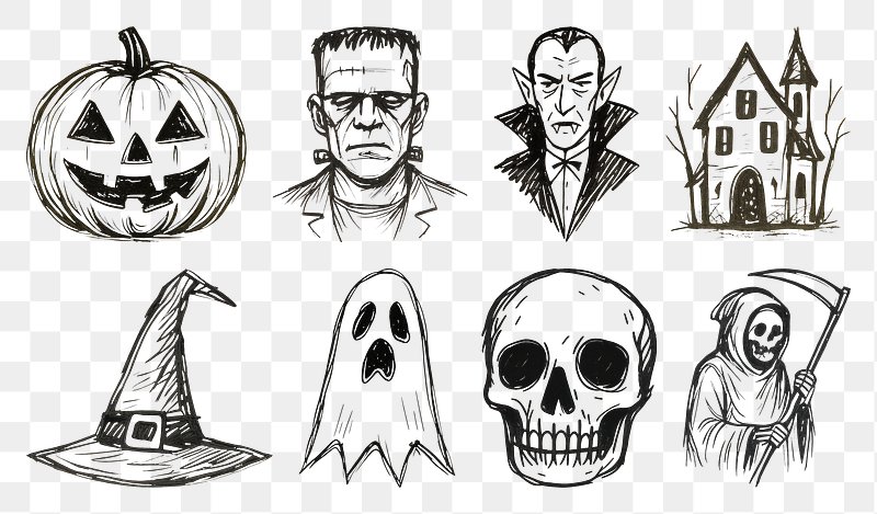 PNG Spooky Halloween sketch icons, element set on transparent background https://www.rawpixel.com/image/21693618/png-spooky-halloween-sketch-icons-element-set-transparent-backgroundView license