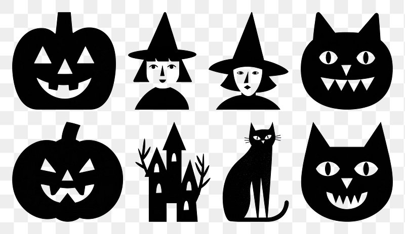 PNG Halloween silhouettes evoke spooky charm, element set on transparent background https://www.rawpixel.com/image/21299198/png-cat-halloween-pumpkinView license
