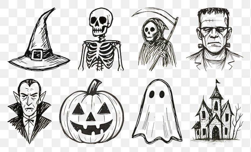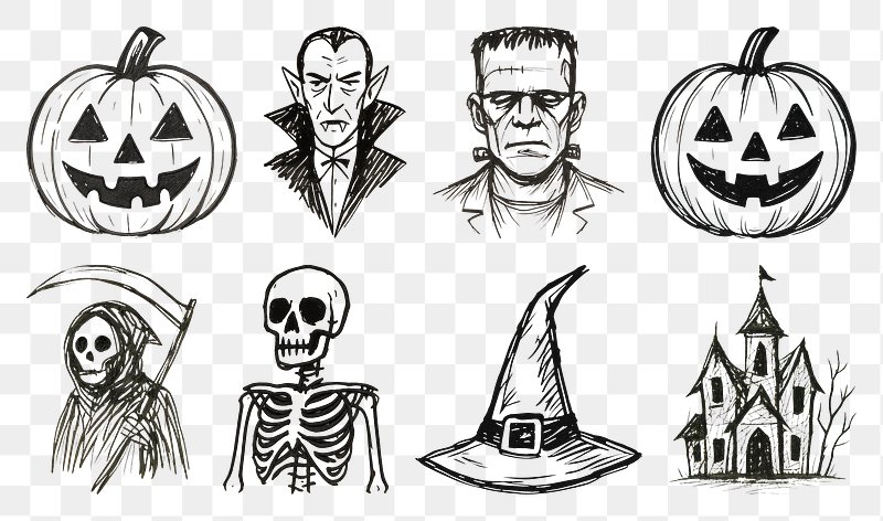 Spooky Halloween-themed sketch illustrations. https://www.rawpixel.com/image/20940544/spooky-halloween-themed-sketch-illustrationsView license