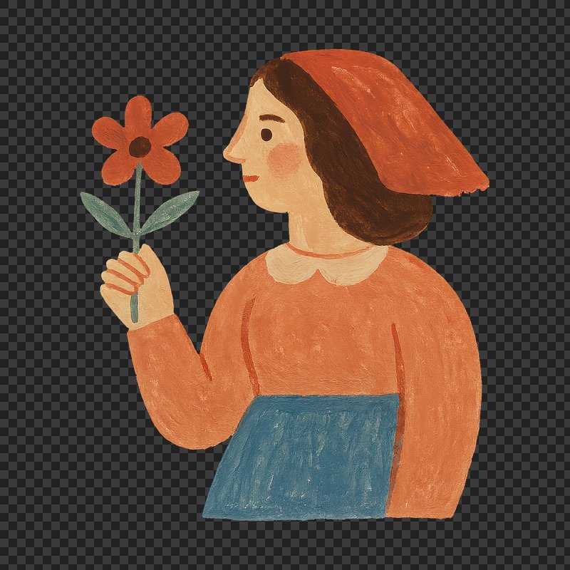 PNG Whimsical woman holding flower https://www.rawpixel.com/image/24942470/png-whimsical-woman-holding-flowerView license