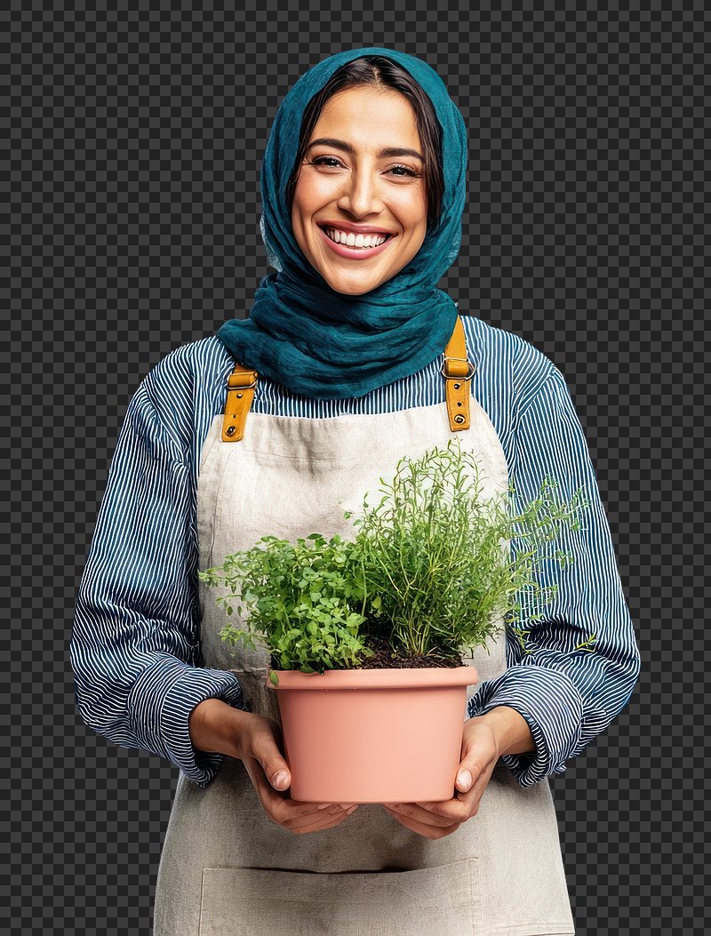 PNG Smiling woman holding potted herbs. https://www.rawpixel.com/image/25251738/png-smiling-woman-holding-potted-herbsView license