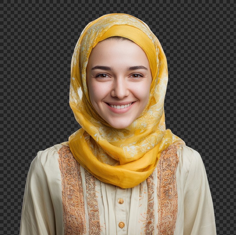 PNG Smiling woman wearing yellow hijab. https://www.rawpixel.com/image/25252374/png-smiling-woman-wearing-yellow-hijabView license