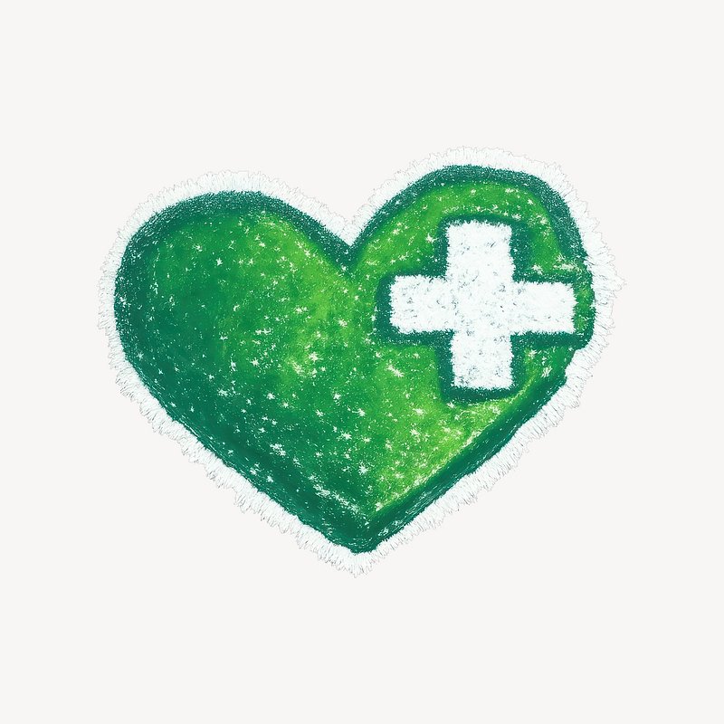 Green heart with medical cross. https://www.rawpixel.com/image/25307637/green-heart-with-medical-crossView license