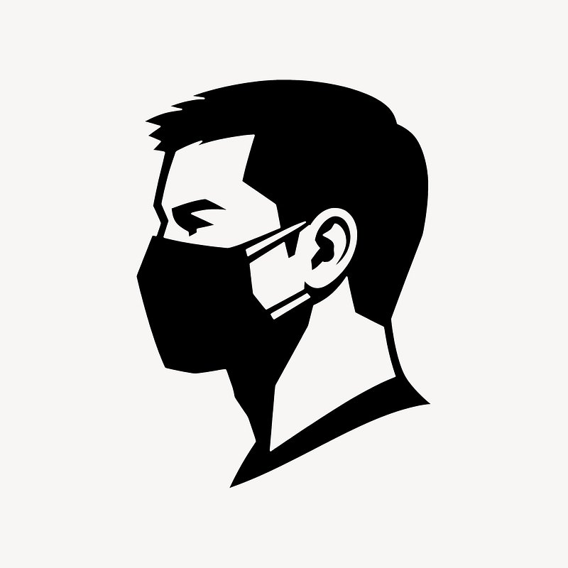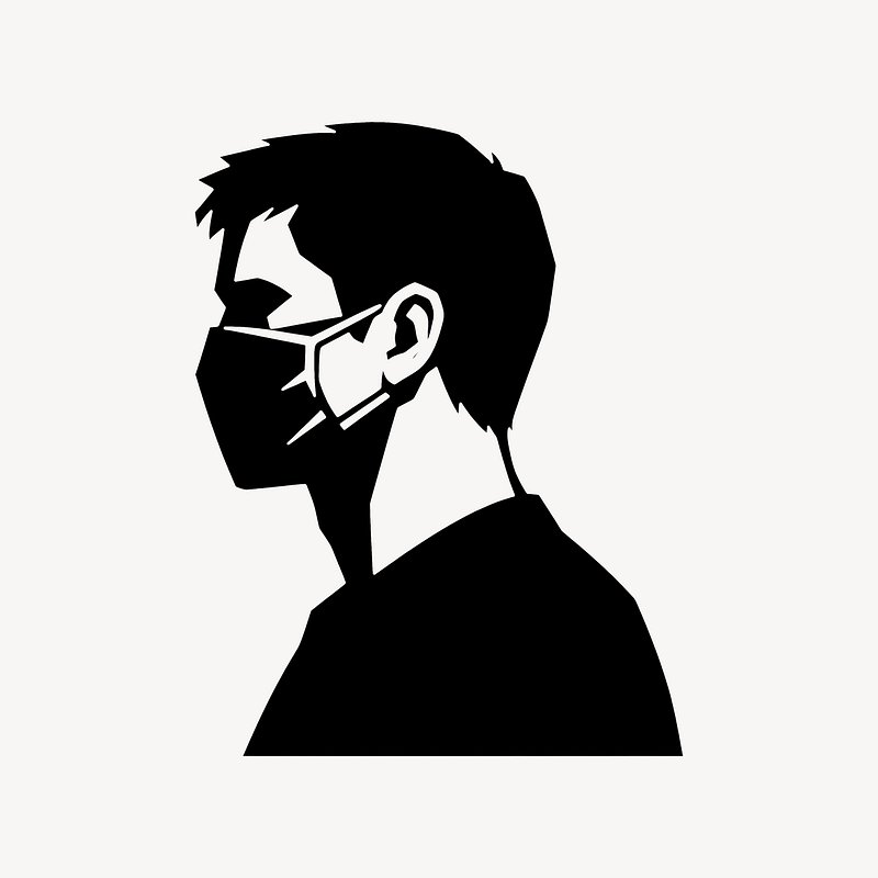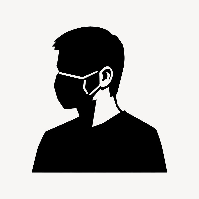 Silhouette person wearing face mask. https://www.rawpixel.com/image/25795464/silhouette-person-wearing-face-maskView license