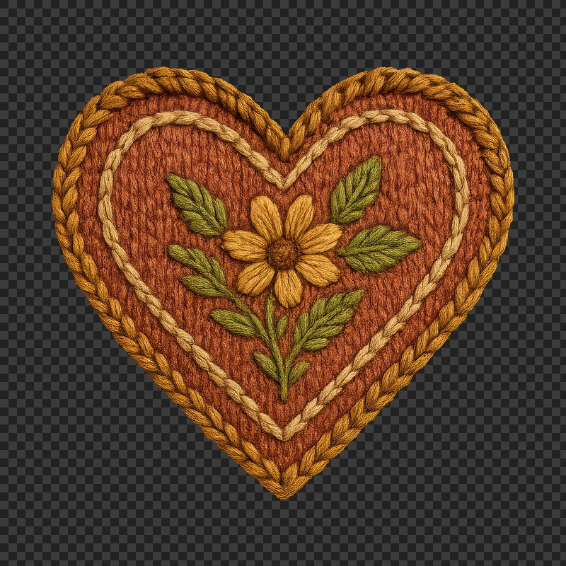 PNG Embroidered heart with floral design. https://www.rawpixel.com/image/23506054/png-embroidered-heart-with-floral-designView license