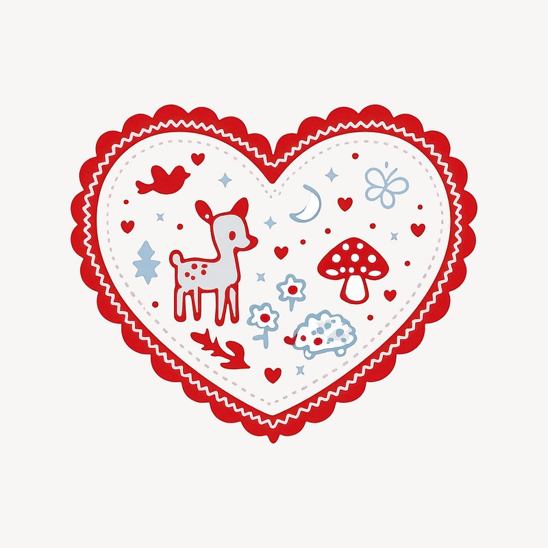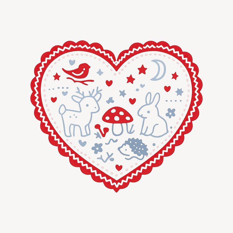 Whimsical heart-shaped woodland illustration. https://www.rawpixel.com/image/25228294/whimsical-heart-shaped-woodland-illustrationView license