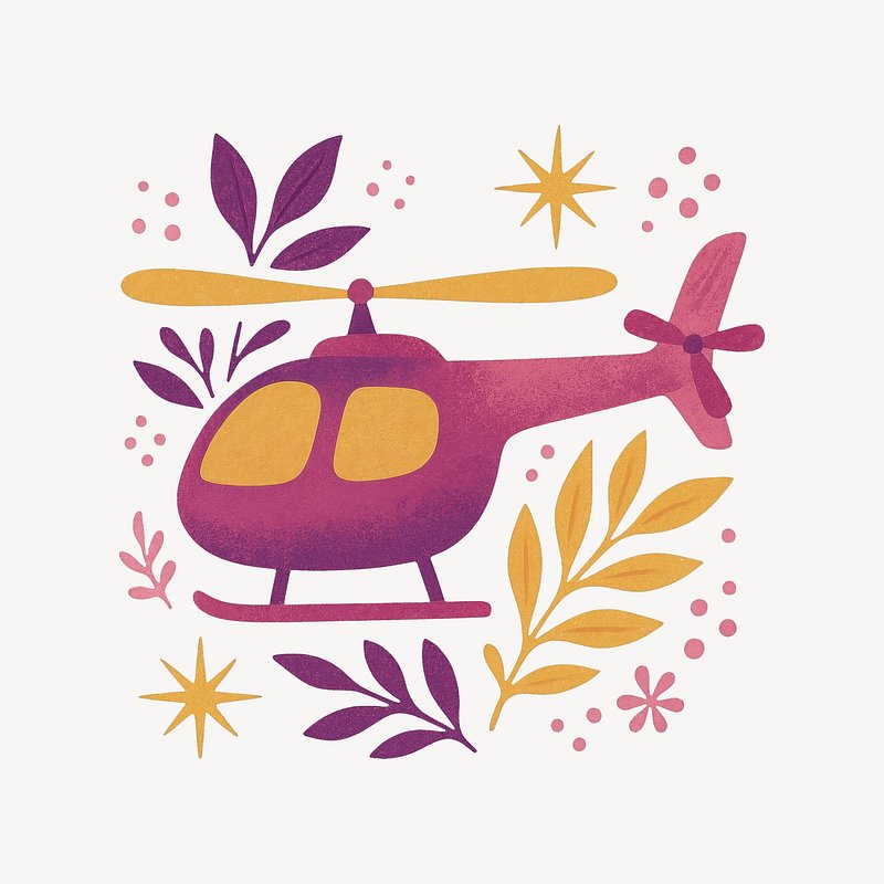 Colorful helicopter with floral elements. https://www.rawpixel.com/image/24660852/colorful-helicopter-with-floral-elementsView license