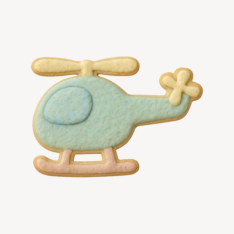 Cute helicopter-shaped cookie design. https://www.rawpixel.com/image/24778380/cute-helicopter-shaped-cookie-designView license